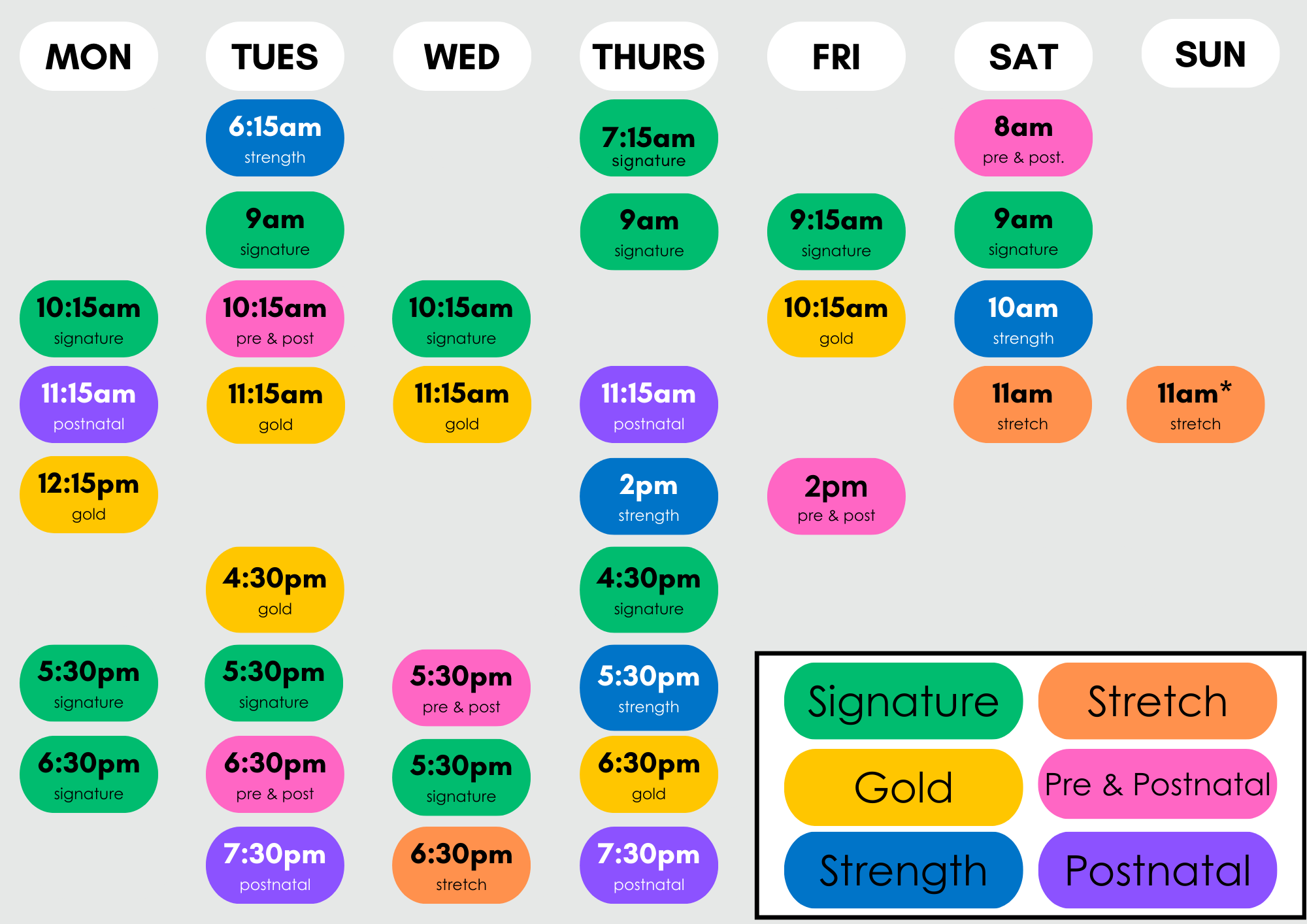 Reformer Timetable We have a range of class types, to suit all bodies and levels of fitness…Check out the class types below: Class Timetable: Book Directly: